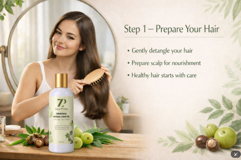 ZaraPrime Herbal Hair Oil helps take care of your hair in a natural and gentle way.