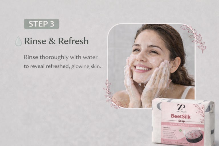 ZaraPrime BeetSilk Face Soap gently cleans your face while nourishing it with beetroot and natural ingredients.
